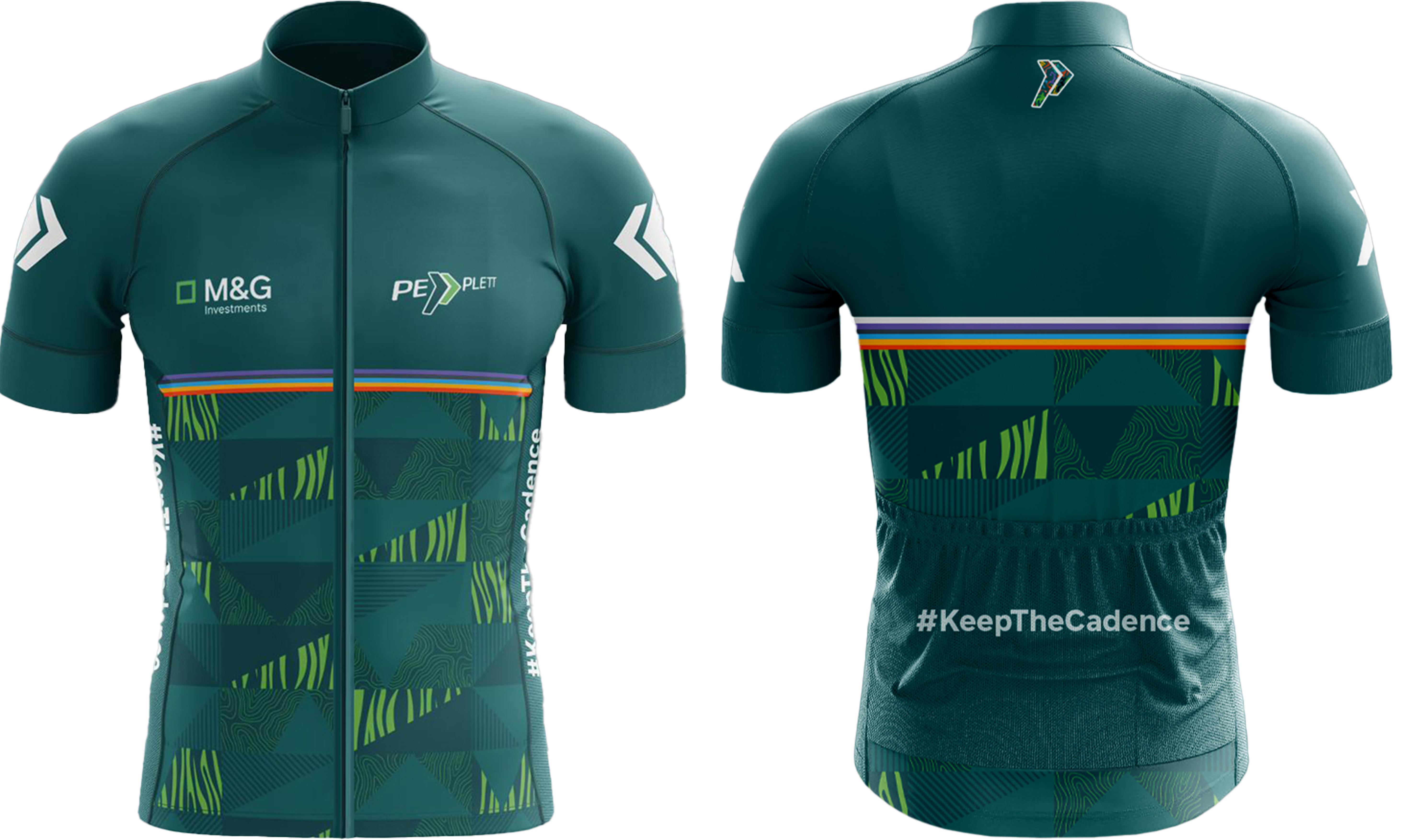 Inspired by the flowing hills and tranquil forests of the M&G Investments PE PLETT route, this design features sleek, minimalist lines representing the natural landscapes you’ll glide through. If you want to feel in harmony with the great outdoors as you ride, this is the jersey for you!